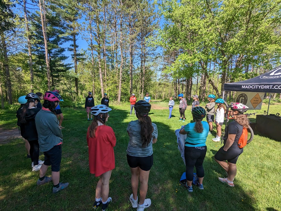 The most perfect weather ever made for an amazing day of riding at Blackhawk Ski Club on Saturday, May 20. During a morning and afternoon event, female-identifying adults and kids gathered with experienced West Madison Mountain Bike Team and Driftless Mountain Bike Team coaches and student athletes to learn more about NICA/Wisconsin League mountain bike teams and gain new skills on bikes.