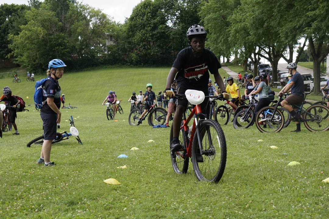 We also spend 1-2 practices learning bike path etiquette. Being safe on the bike path when riding to the trails is extremely important, and we take it very seriously.
